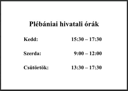 PLÉBÁNIAI ÜGYFÉLFOGADÁS