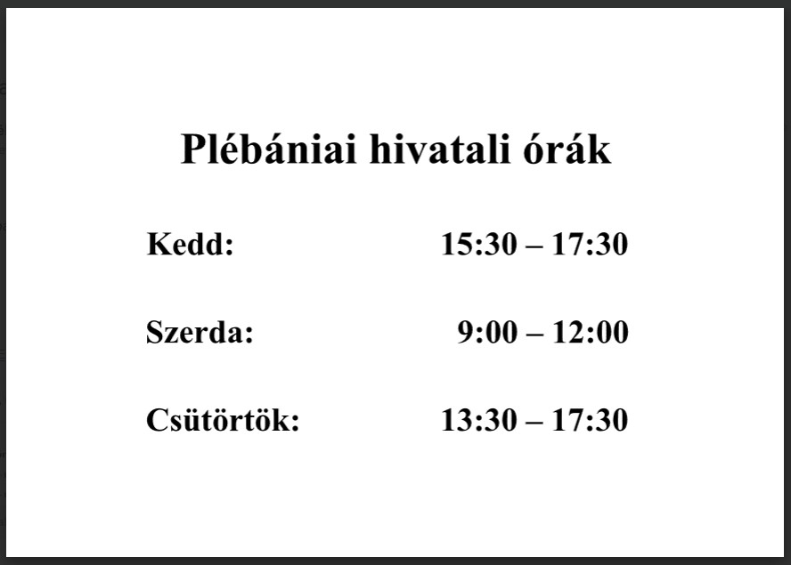 PLÉBÁNIAI ÜGYFÉLFOGADÁS